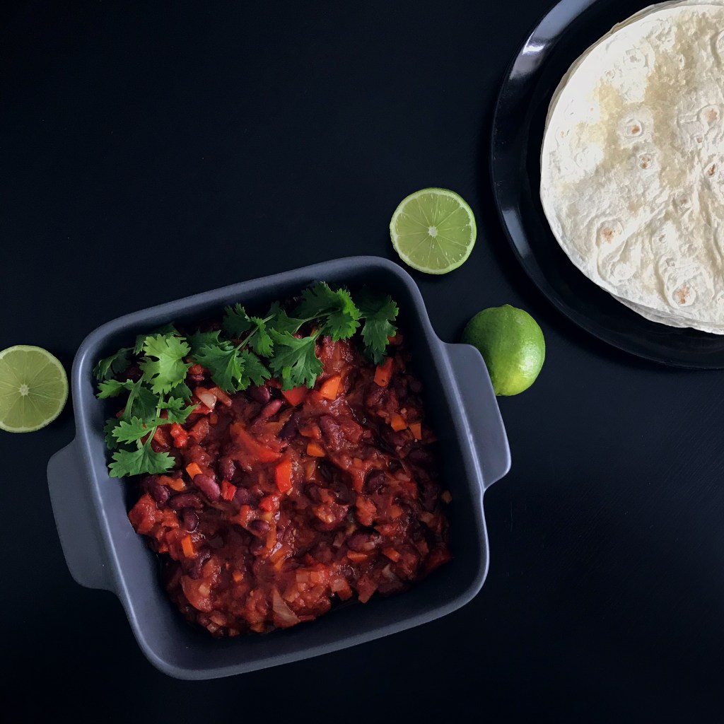 Chili con carnen vegaanisen version sin carnen voi valmistaa lähes mistä tahansa kasvikunnan proteiinista. Tämä helppo mutta sitäkin herkullisempi chili sopii erinomaisesti tortilloihin tai riisin kanssa. Idea chiliin syntyi jääkaapissa olevista useista kastikepurkeista, joissa oli vain pieni tippa jäljellä mutta roskiinkaan ei viitsinyt heittää. Chilin tulisuusastetta voi säätää itse. Oma versioni on miedon tulinen, joten lisää chiliä jos haluat kunnolla potkua ruokaasi.