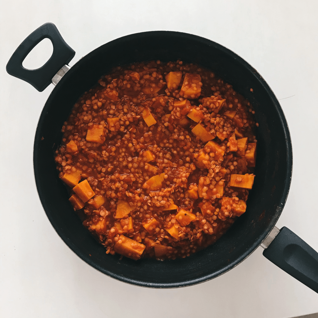Linssit on meidän keittiön yksi kulmakivistä sillä ne ovat edullisia ja sisältävät paljon proteiinia Etenkin punaiset linssit sopivat monipuolisesti keittoihin, patoihin, pyöryköihin ja pihveihin, jonka vuoksi meiltä löytyy aina vähintään yksi paketti. Meillä on jälleen kaappientyhjennyspäivät meneillään, joten valmistin linsseistä, bataatista ja hieman nahjuuntuneesta inkiväärin palasta herkullisen padan, jota syötiin basmatiriisin kanssa.