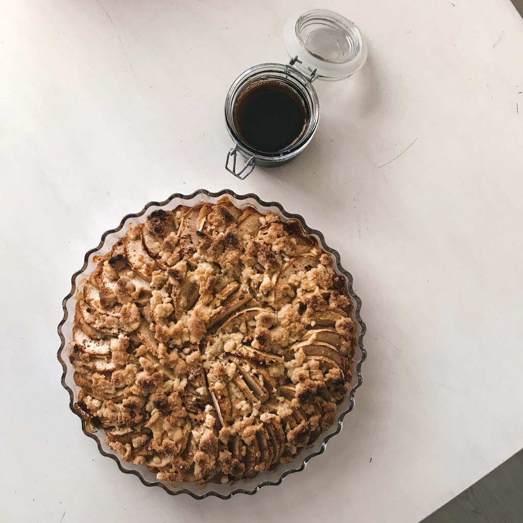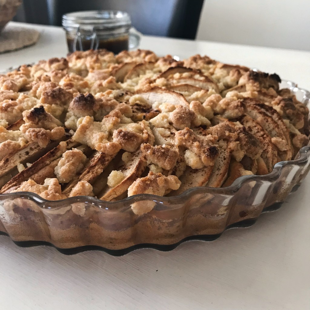 Omenat ovat nyt satokauden sesongissa ja niitä saa kaupasta todella edulliseen hintaan. En ole koskaan ollut omenapiirakan ystävä mutta Bake with Anna Olson -ohjelma tempaisi mukaan. Tässä omenapiirakassa yhdistyy useampi elementti. Pullan makuinen taikina, makeat omenat, kaneli ja murutaikina tekevät piirakasta herkullisen. Omenapiirakan kylkeen sopii vaniljajäätelö tai suolainen kinuskikastike.