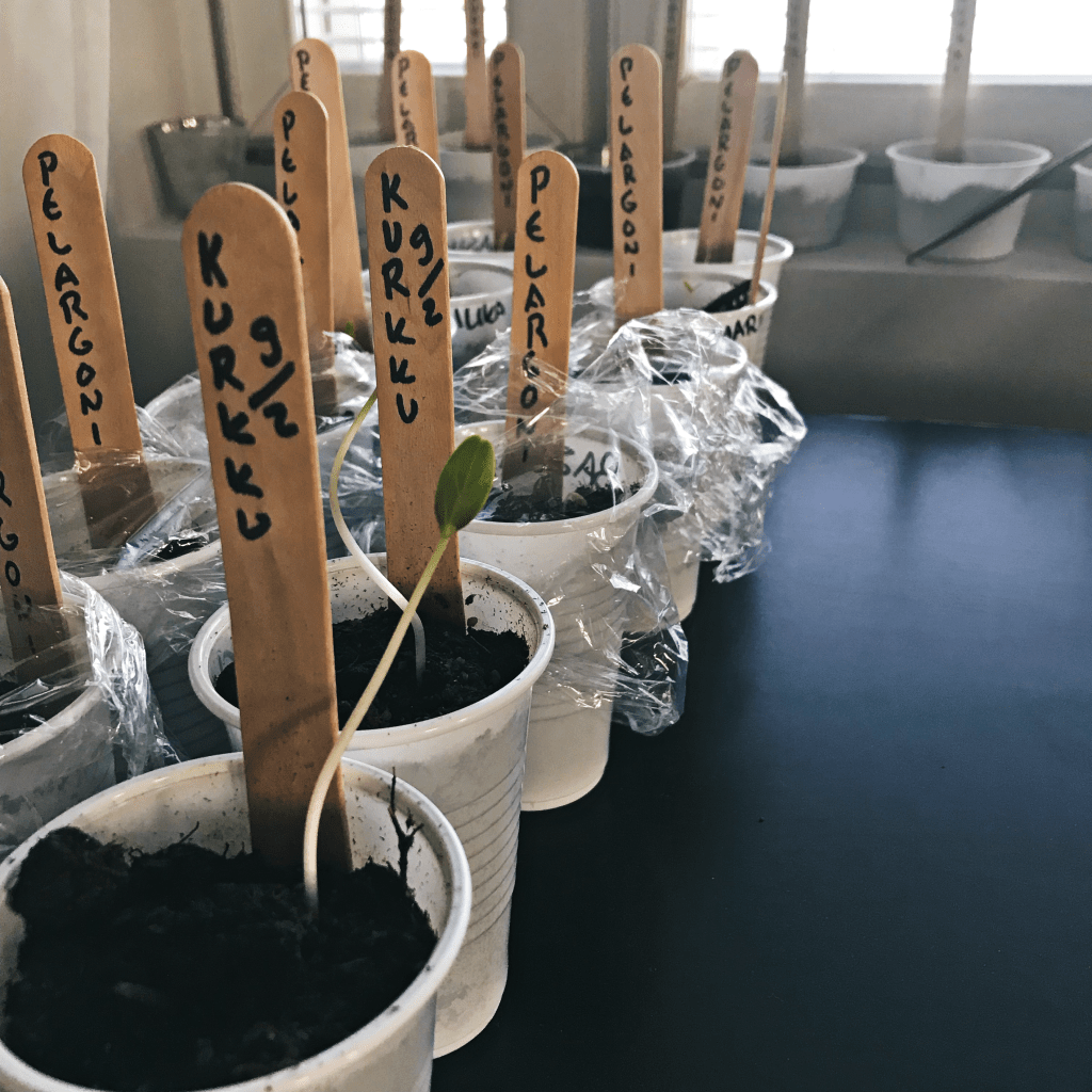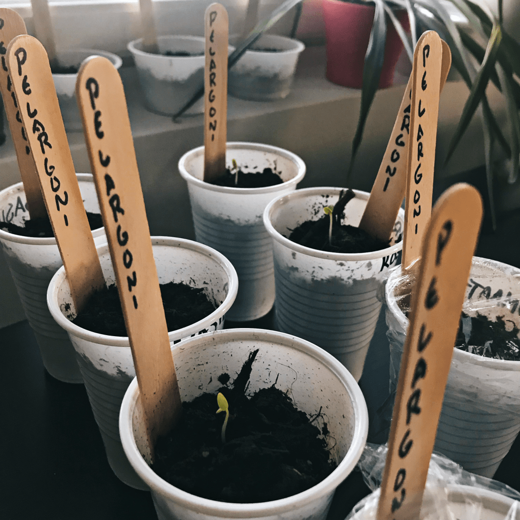 Pelargonit ovat kanssa omasta mielestäni kauniita ja valitsin lajikkeeksi Lustre Deep Pinkin, koska vaaleanpunainen ja pinkki ovat lempivärejäni. Kylvin siemenet harvaan taimimultaan ja peitin kelmulla, joissa oli ilmareiät. Pelargonit itivät melko nopeasti ja osasta olen jo joutunut kelmut poistamaan, jotta taimilla on tilaa kasvaa. Pelargonit ovat pöydällä lähellä vetoisaa ikkunaa, jotta ne saavat olla hieman viileämmässä.