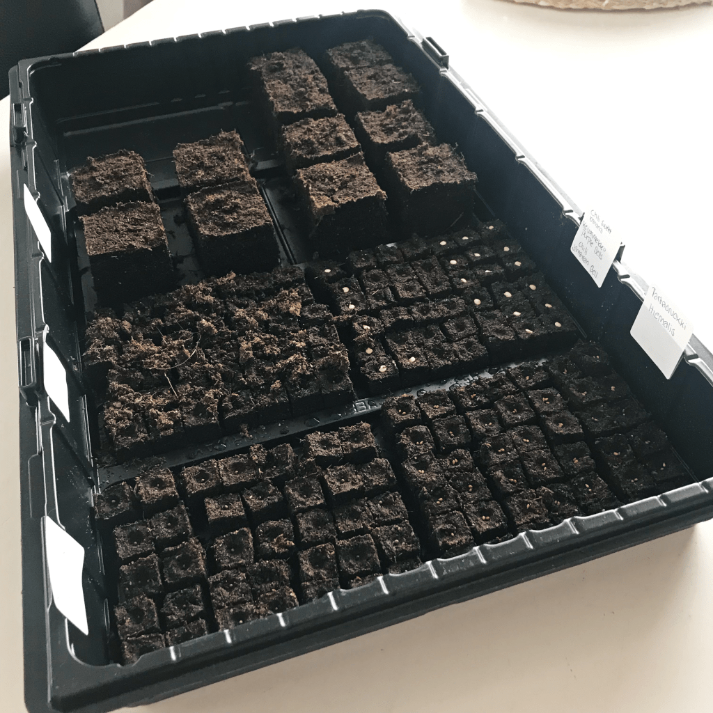 Mikä parasta, multakuutiot vähentävät esikasvatuksessa tulevaa jätettä! Olen aiemmin esikasvattanut taimia kertakäyttömukeissa, jogurttipurkeissa ja milloin missäkin, joita olen kierrättänyt. Nyt kuutiot eivät tarvitse kuin alustan, joita pesen sekä kierrätän ja muovikipot tulee vasta myöhemmin kuvioihin. Kierrätän edelleen kotona olevia muovikippoja kouliessani tai myydessäni taimia mutta kun kipot tulevat siihen pisteeseen, ettei niitä voi enää kierrättää, yritn etsiä ekologisemman vaihtoehdon taimipoteille jotta pääsisin kokonaan muoviastioista eroon.