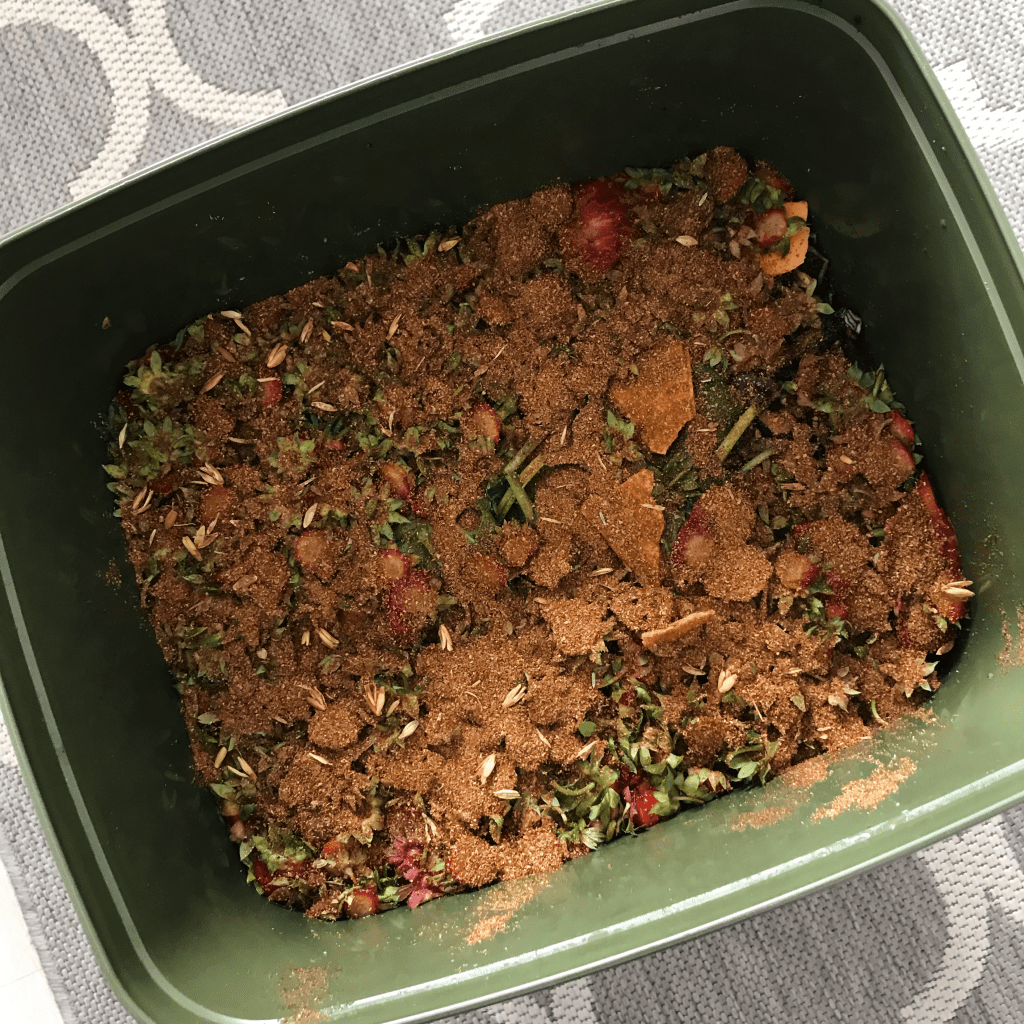 Kun olet saanut kotiisi bokashitarvikkeet, ei tarvitse enää kuin aloittaa. Laita bokashisangon pohjalle talous- tai vessapaperia jotta saat välipohjan peitettyä. Sitten ripoittele paperin päälle ruokalusikallinen bokashirouhetta jotta käyminen saadaan alkuun. Bokashisanko avataan vain kerran päivässä, jotta se saisi mahdollisimman vähän ilmaa. Tämän vuoksi biojätteet kerätään päivän tai kahden ajalta erilliseen astiaan. Meillä tulee niin vähän biojätettä, ettei ole mitään järkeä avata sankoa joka päivä desin biojätemäärän takia. Sen vuoksi meillä avautuukin bokashisanko vain joka toinen päivä.