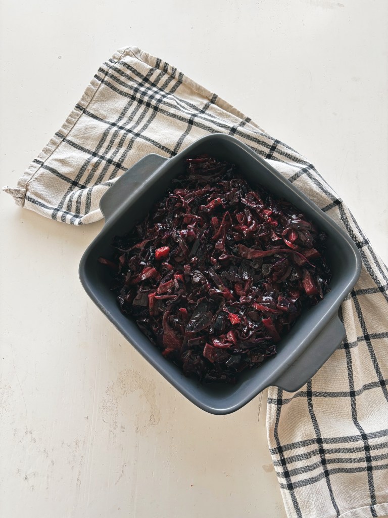 Lämpimät kasvislisukkeet ovat olleet viime aikoina hitti meidän keittiössä. Kaikki paahdettu, haudutettu sekä paistettu maistuu tällä hetkellä ja haudutettu punakaali osoittautui varsinaiseksi herkuksi. Sen lisäksi myös kaikkien ruoka-aineiden hyödyntäminen on ollut jo vuosia meidän keittiössä juttu josta ei tingitä. Haudutettu punakaali syntyikin ylijääneestää punakaalista. Alunperin tarvitsin kaalia ihan toiseen ruokaan mutta pilkottuja paloja ei ollut saatavilla. Otin siis kokonaisen kaalin päättäväisenä, että se tulee syödyksi tavalla tai toisella.