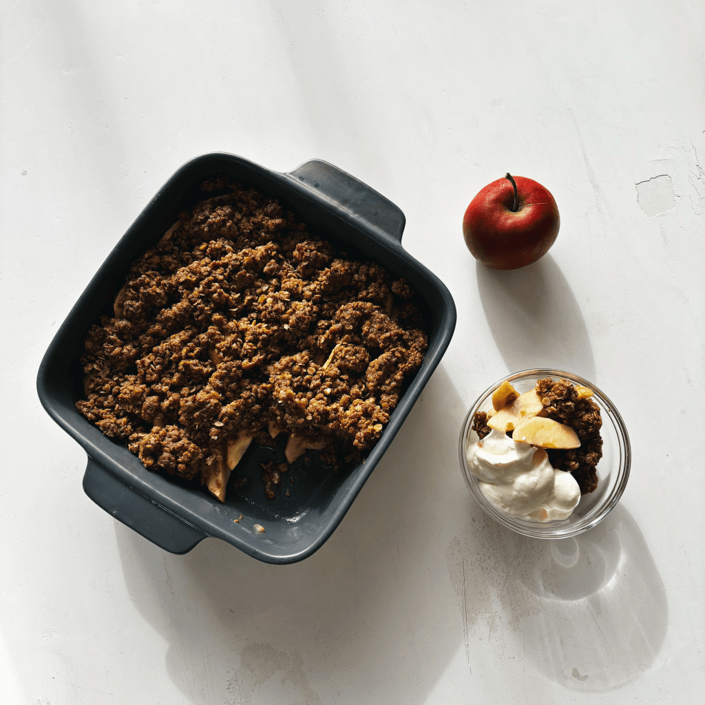 Tarjoile omenapaistosta vaahdotetun vegaanisen vaniljakastikkeen kanssa.