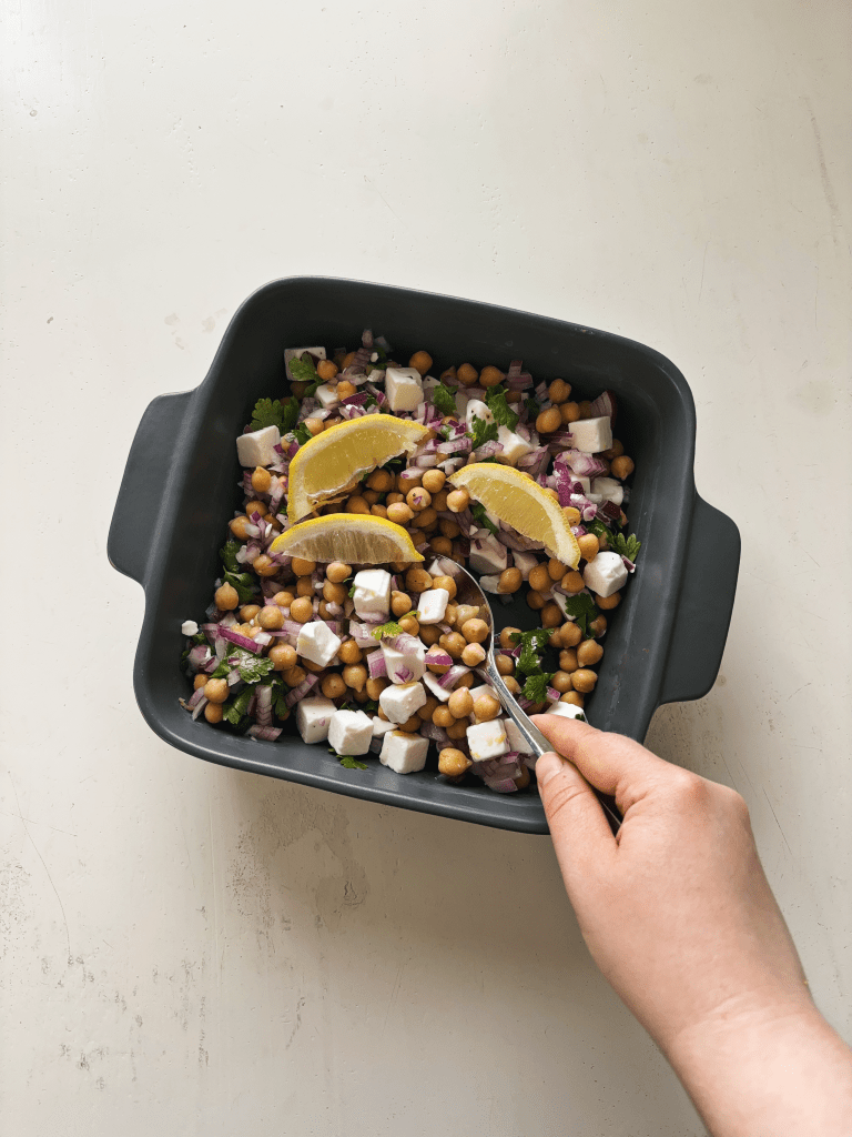 Kun ruokailu perustuu sesonkeihin ja edullisimpiin hintoihin, niin kesä on salaattien aikaa. Siinä missä talvella syödään lähinnä juureksia, kesällä nautitaan enemmän raikkaista salaateista kun tarpeita saa omalta parvekkeelta sekä kasvimaalta samaan aikaan kun kaupoissa vihannesten hinta on laskenut. Kikhernesalaatti on raikas lisukesalaatti, jossa makua on antamassa sitruuna, lehtipersilja sekä vegaaninen salaattijuusto. Salaatti valmistuu käden käänteessä ja se sopii erityisesti grilliruokien kanssa.