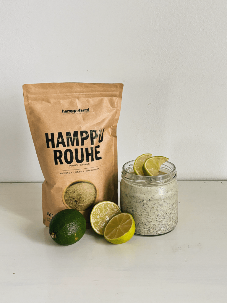 Matka hampun makujen maailmaan jatkuu tällä kertaa hamppurouheen muodossa. Hamppurouhe on hienojakoista ja se sopii smoothieihin, puuroihin, leivontaan sekä jogurtin sekaan. Lisäksi hamppurouhe sopii myös ketogeeniseen ruokavalioon sen alhaisen hiilihydraattipitoisuuden vuoksi. Kokeilin hamppurouhetta tuorepuuron kanssa, jossa hain hieman tropiikkisia makuja kookoksen ja limen avulla. Hamppu sopikin tähän yhdistelmään yllättävän hyvin tuoden makuun hieman pehmeyttä. Tämä tuorepuuro onkin oikea herkkupuuro jolla hemmotella itseään aamuisin.
