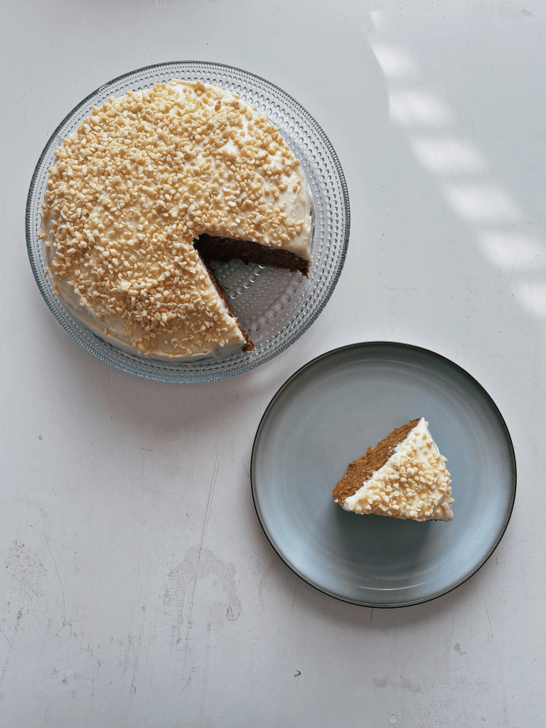 Täytyy kyllä sanoa, että tässä kakussa on kaikki elementit kohdallaan. Porkkana tuo sopivasti meheyttä, kanelin ja neilikan voi maistaa, kakku on helposti leikattava ja kuorrute on täydellinen. Tämä resepti jää itselleni varmaan käyttöön kun porkkanakakkuhimo yllättää uudelleen.