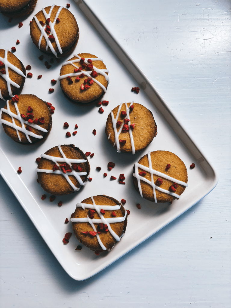 Kun törmäsin Runebergin keksien ohjeeseen, ensimmäinen ajatus oli, että tuo resepti on pakko veganisoida! Nimittäin kuvat sekä ohje runebergin tortun makuisesta täytekeksistä sai veden kielelle. Alkuperäinen ohje on Perinneruokaa prkl -blogista josta muokkasin vegaanisen version. Alkuperäisellä ohjeella tulee 12 keksiä mutta tein itse puolta pienempiä jolloin sain 24 pientä täytekeksiä.